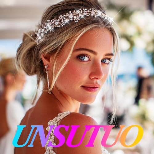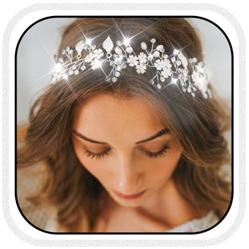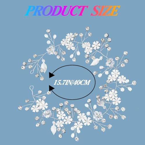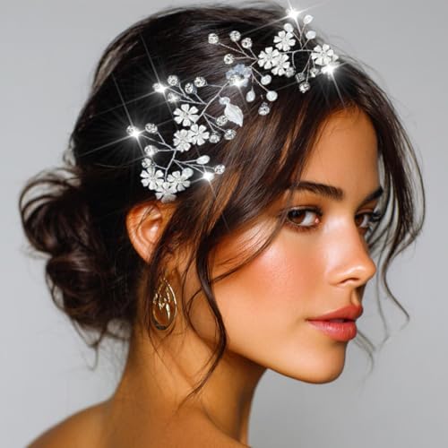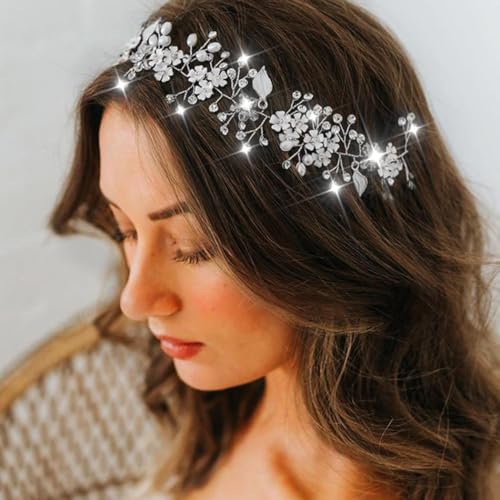Unsutuo Flower Bride Wedding Headbands Silver Crystal Bridal Headpieces Leaves Hair Vine for Women and Girls (Silver)