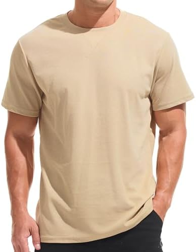 Sponsored Ad - Men's Mini Waffle Knit Crew Neck T-Shirt - 190gsm Ultra-Fine Textured Cotton Tee - 1mm Micro Grid Breathable Top