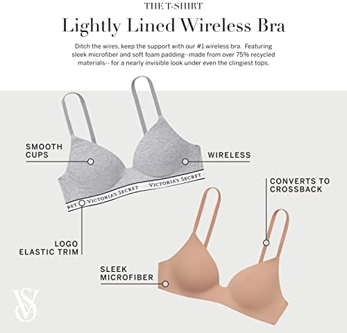 Women's Lightly Lined Wireless T-Shirt Bra, Bras for Women (32A-38DDD)