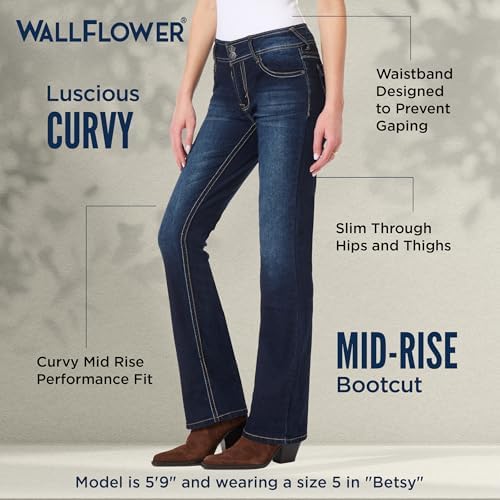 Luscious Curvy Bootcut Jeans for Women Mid-Rise Insta Stretch Denim, Size Inclusive Juniors Jeans, Sizes 0 to 24