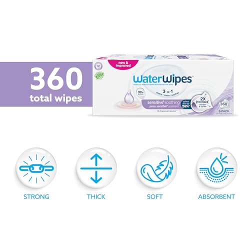Sensitive+ Soothing Wipes, 3-In-1 Cleans, Cares, Soothes, 99% Water with Botanical Extract, Unscented & Hypoallergenic Baby Wipes, 360 Count (6 Packs)
