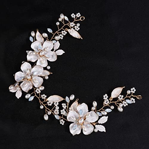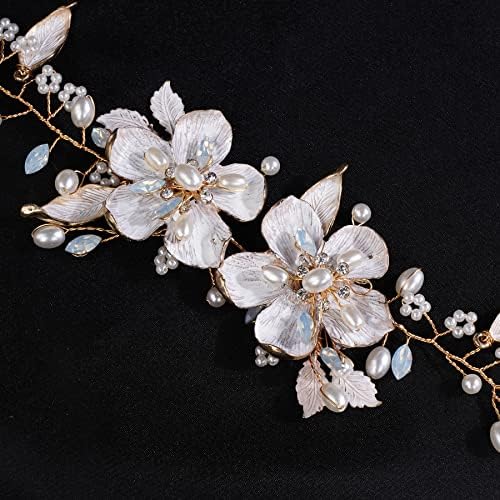 Xerling Wedding Flower Hair Vines for Brides Opal Crystal Hair Piece Floral Hair Accessory for Girls Pearl Head Chain Heavy