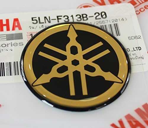 5LN-F313B-20 - Genuine 40MM Diameter Yamaha Tuning Fork Decal Sticker Emblem Logo Black/Gold Raised Domed Gel Resin Self Adhesive Motorcycle/Jet Ski/ATV/Snowmobile
