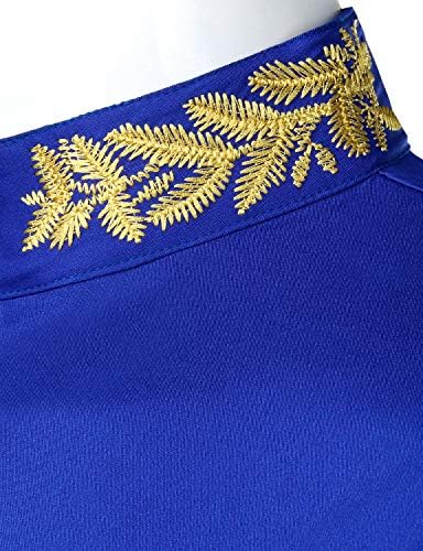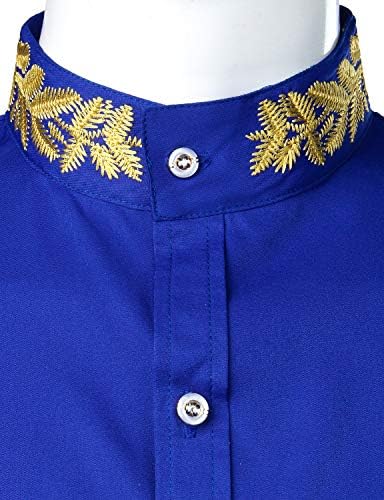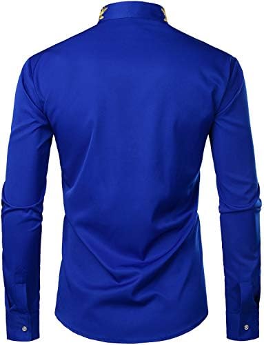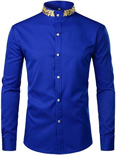 Sponsored Ad - Mens Hipster Gold Embroidery Mandarin Collar Slim Fit Long Sleeve Casual Dress Shirts