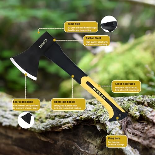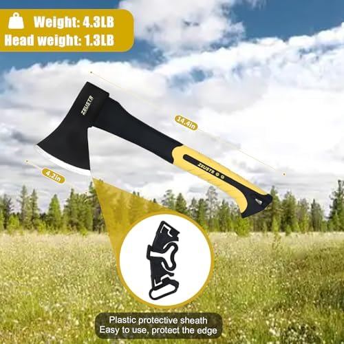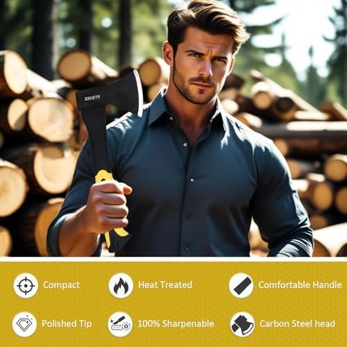 Small Camping Axe, Forged Steel Blade with Shock-Absorbing Handle, Outdoor Hatchet for Camping&Kitchen, Wood Chopping and Kindling