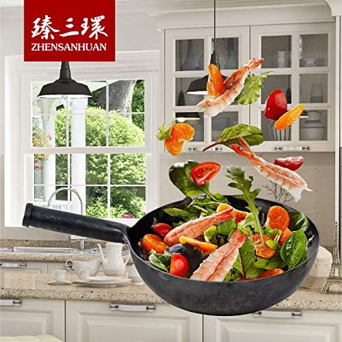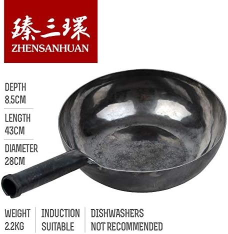 Sponsored Ad - 臻三环 ZhenSanHuan Chinese HandHammered Iron Woks and Stir Fry Pans, Non-stick, No Coating, Induction Suitable, 章丘铁锅,舌尖上的中国,A bite of China (28CM)