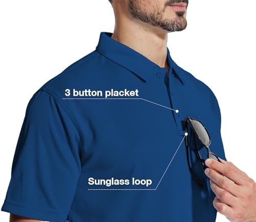 5 Pack Polo Shirts for Men with Pocket Dry Quickly Short Sleeve Athletic Outdoor Work Collared Shirts
